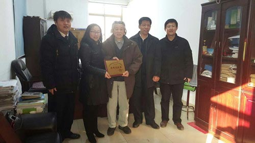 2016年1月27日上午,省住建厅勘察设计处尹枝俏处长,在张洪峰副处长、孙淦科长和省勘察设计协会乔社秘书长的陪同下,带着新春的祝福,专程来院看望严伯铎大师,并为严伯铎大师颁发了山东省勘察设计行业“特殊成就奖”荣誉奖牌。