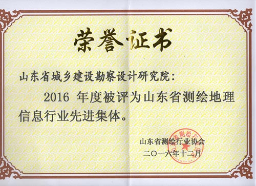 我院荣获2016年度山东省测绘地理信息行业先进集体称号