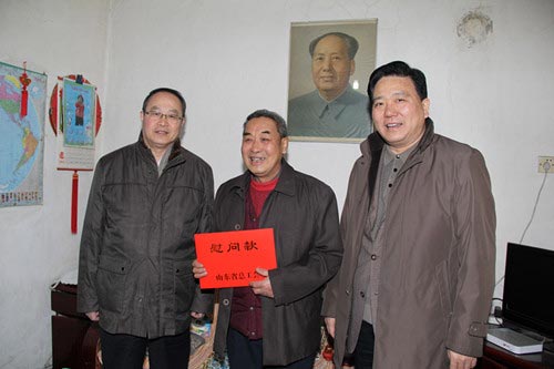 2016年1月25日下午,省总工会副主席赵立群、省住房城乡建设厅副巡视员卢晓栋等领导,专程到我院走访慰问困难职工宗德章、宋长有同志,在寒风中为困难职工送上党和政府的一份关爱。省建设工会毕世勇主席、邵永立部长,我院院长付宪章、工会主席张方贵陪同走访慰问。