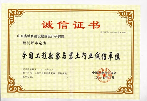 多年来,我院始终坚持以诚信为法宝,扎实推进诚信建设,严格遵守行业法规、市场法规、技术规范,着力打造精品工程,积极履行社会责任,取得了良好的经济效益和社会效益。