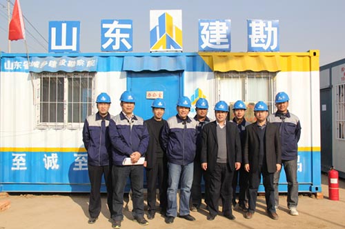 2013年11月9日,院长付宪章、常务副院长苏玉玺、副院长张立臣和负责质量与安全文明生产管理部的有关负责同志,来到院基础公司承担的恒大金碧新城桩基施工工地检查指导工作。