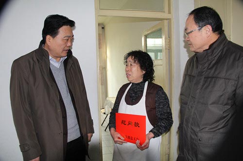 赵立群、卢晓栋等领导详细了解了张家斌、崔连英两位同志的病情和各自的家庭困难情况,给两位同志送来了慰问金,鼓励两位同志增强信心,保重身体,在组织的帮助下克服暂时困难,同时向两位同志及其家人表达了新春佳节的美好祝愿。